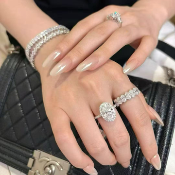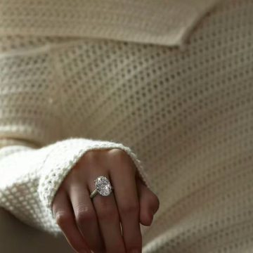 “This oval cut is huge and crystal clear. It looks so classy with the thin pave band.”
