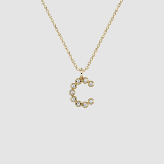 Liora Muse Letter Pendant with Initial Letter A-Z Charm 26 Letters Lab-Grown Diamonds Bubble Necklace 10k Solid Gold