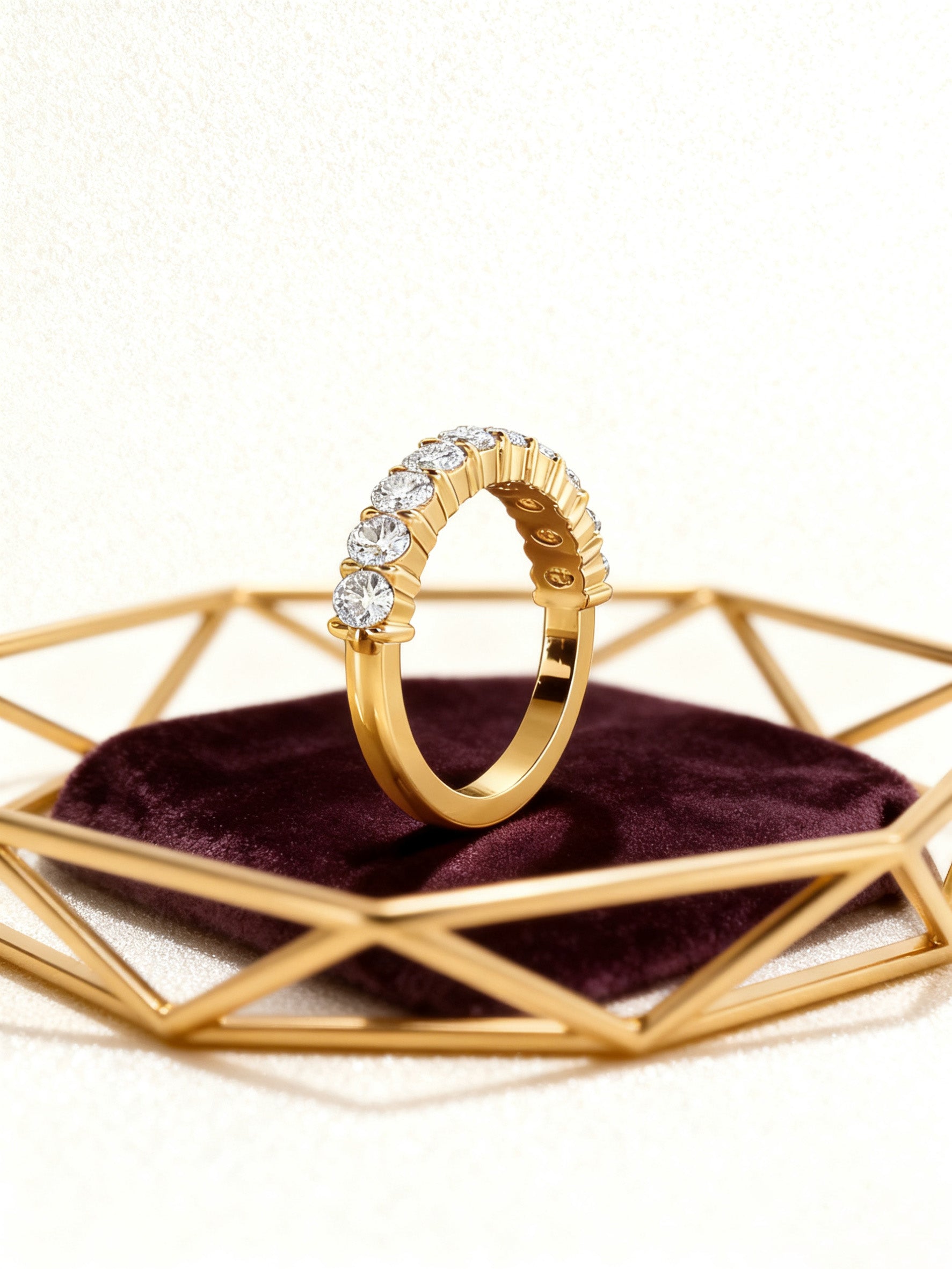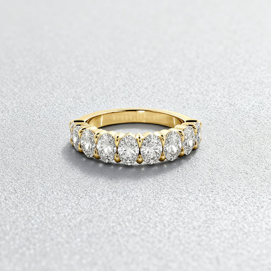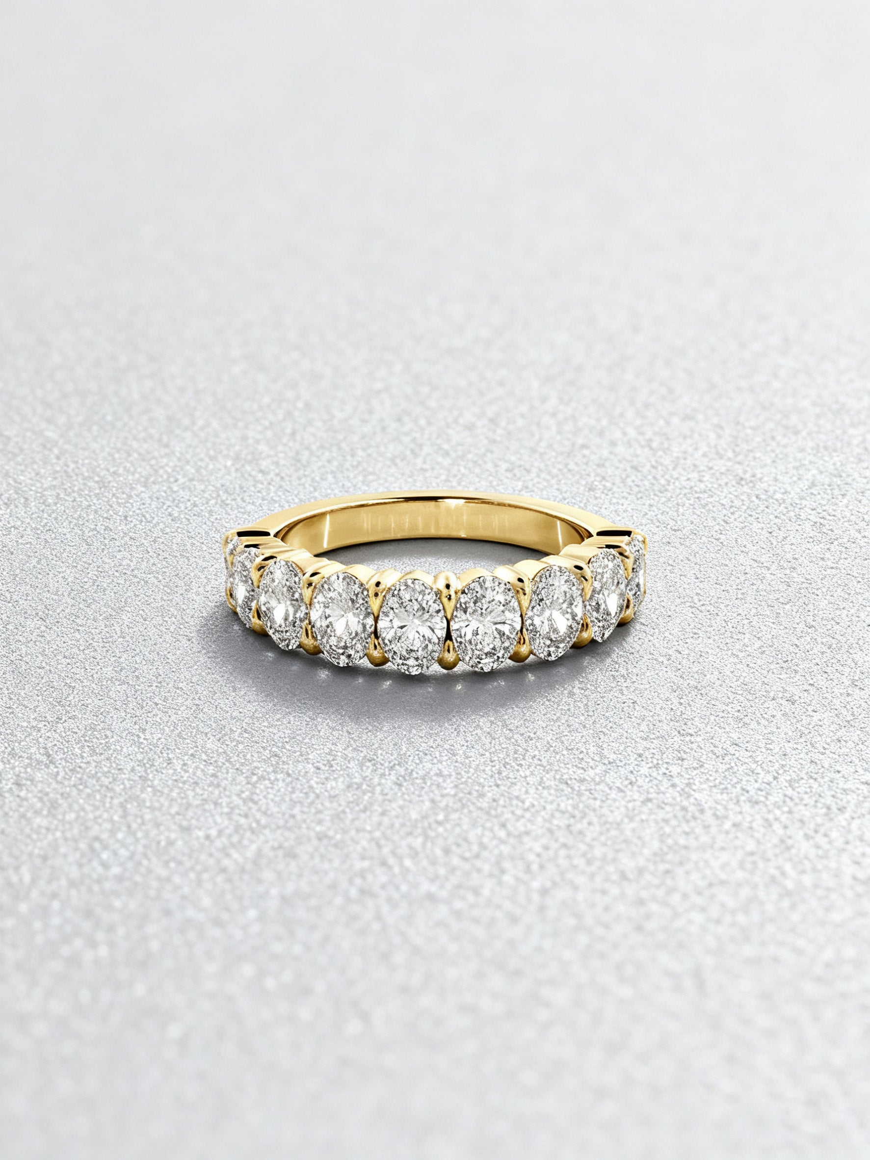 Elegant and timeless, this Oval Cut Half-Circle Eternity Ring captures brilliant fire from every angle. Set with perfectly matched oval-cut lab-grown diamonds totaling 1.00 ct, each stone is secured in a refined shared-prong setting that enhances brilliance while maintaining a smooth, comfortable fit. Ideal as a wedding band, anniversary band, or stacking piece, this ring delivers classic sophistication with modern, ethical luxury.