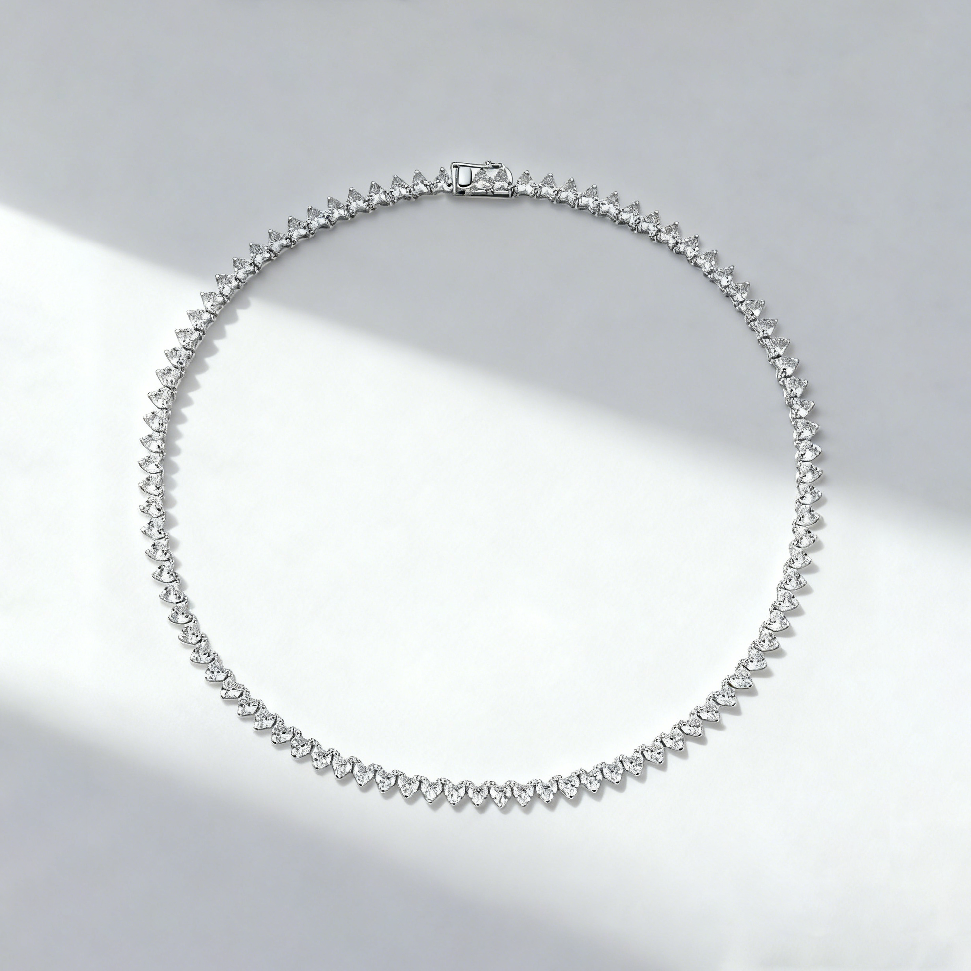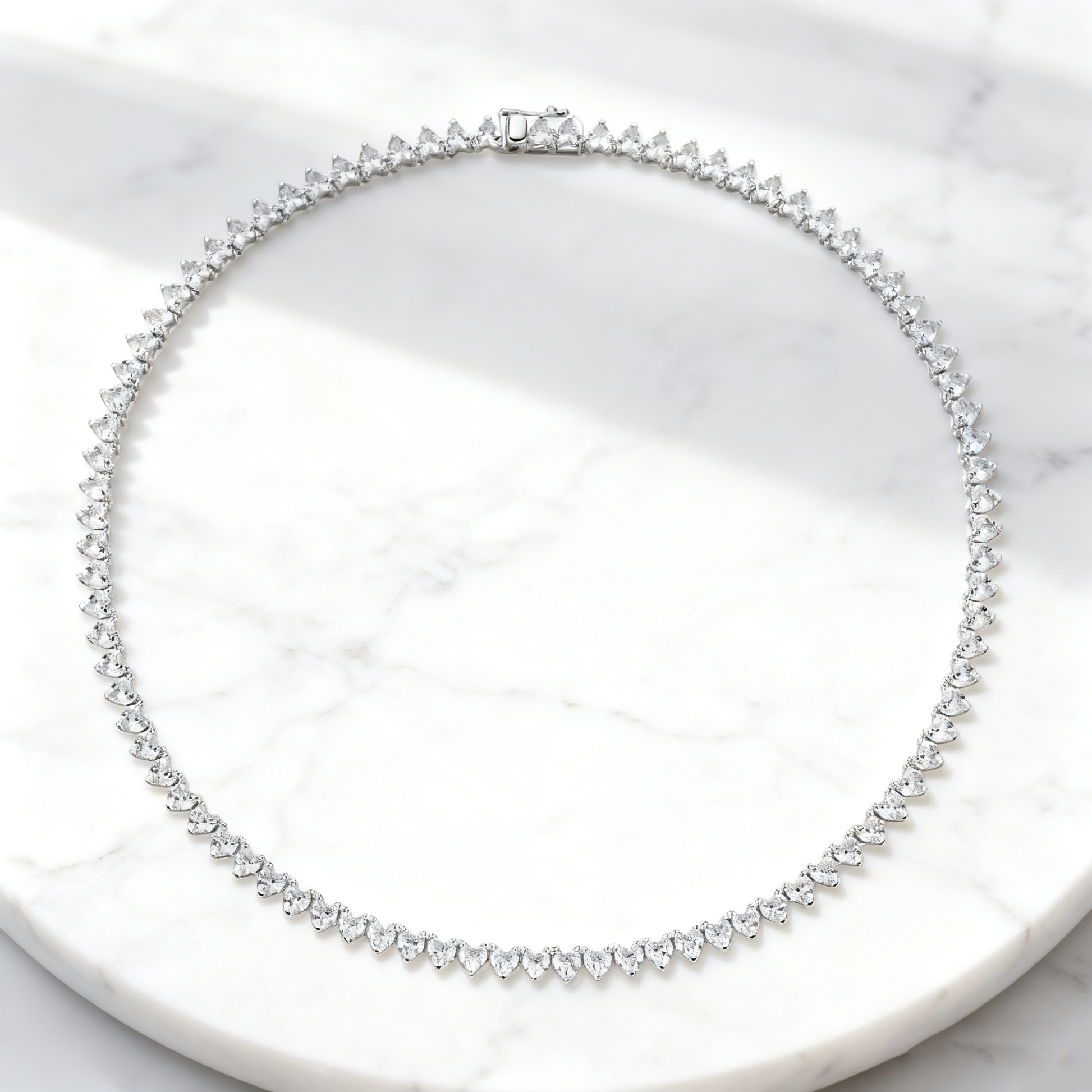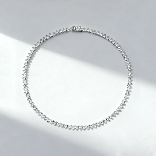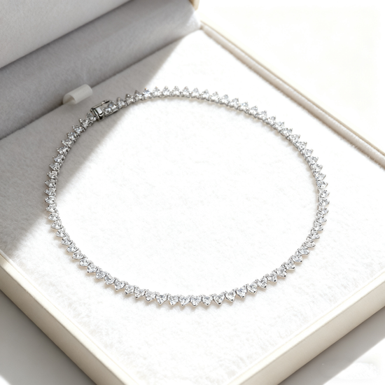 Delicate, romantic, and exquisitely luminous, Mia Liora’s 0.20 ct Heart Shape Prong Setting Lab Grown Diamond Tennis Necklace captures the essence of refined femininity. Each link showcases a perfectly cut 0.20 ct heart shape lab grown diamond, secured in an open prong mount that allows light to enter from every angle — creating an uninterrupted line of brilliant sparkle that dances across the neckline.