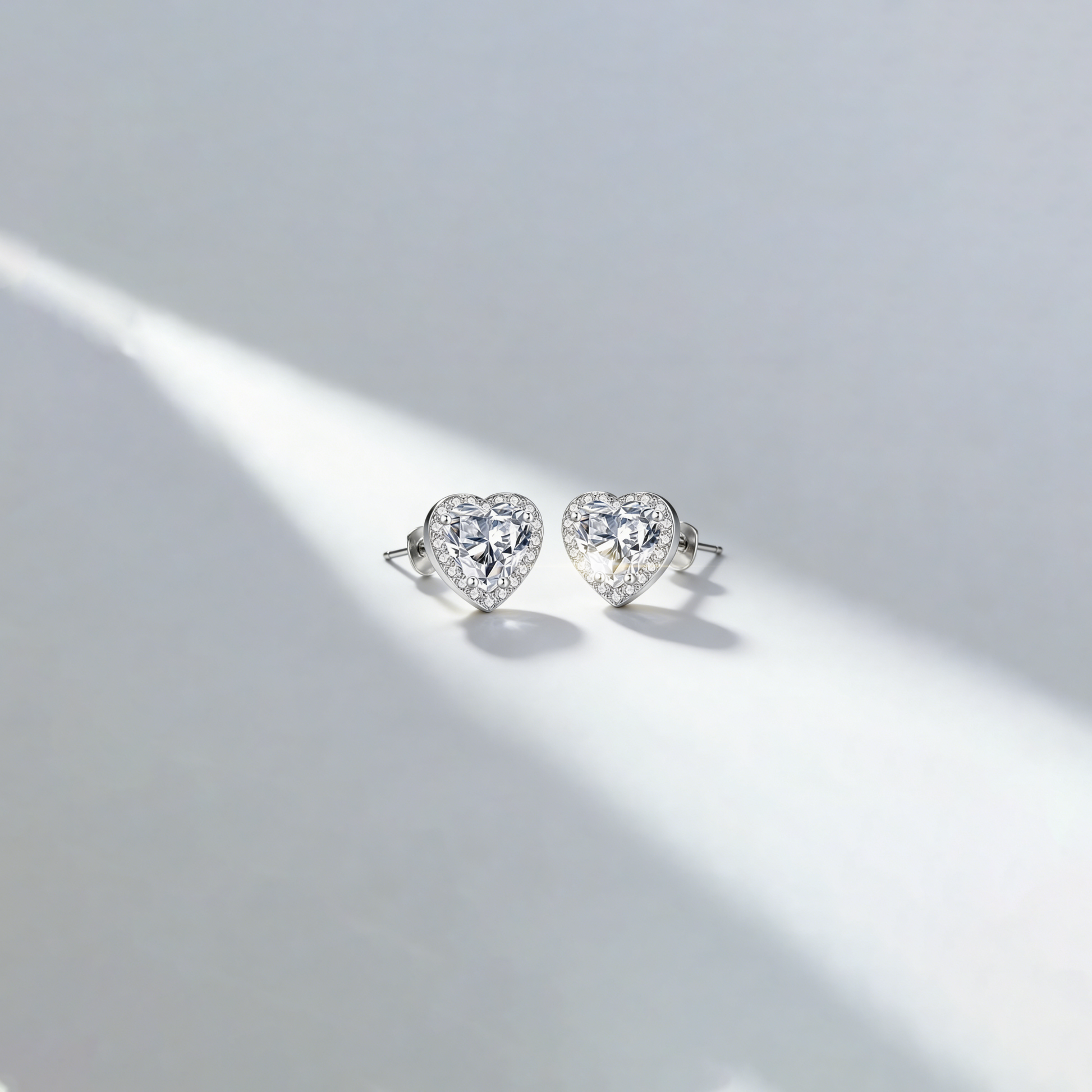 Delicate, romantic, and brilliantly expressive, these 0.60 ct Heart Shape Lab-Grown Diamond Halo Stud Earrings are designed to capture the warmth and sparkle of love in its most elegant form. Each earring features a beautifully crafted heart-shaped centre diamond that reflects light with feminine fire and symmetry. Surrounding the centre stones is a refined 0.10 ct halo of round diamonds, adding a soft, luminous frame that enhances the heart silhouette from every angle.