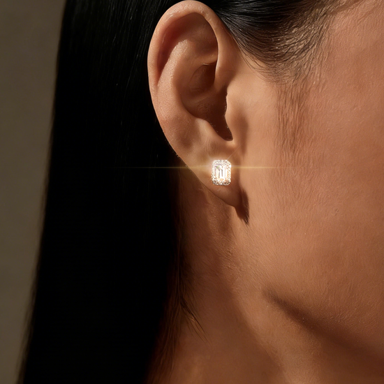 1.00 ct Emerald Cut Lab-Grown Diamond Halo Stud Earrings (main stone 0.50ct each ear)