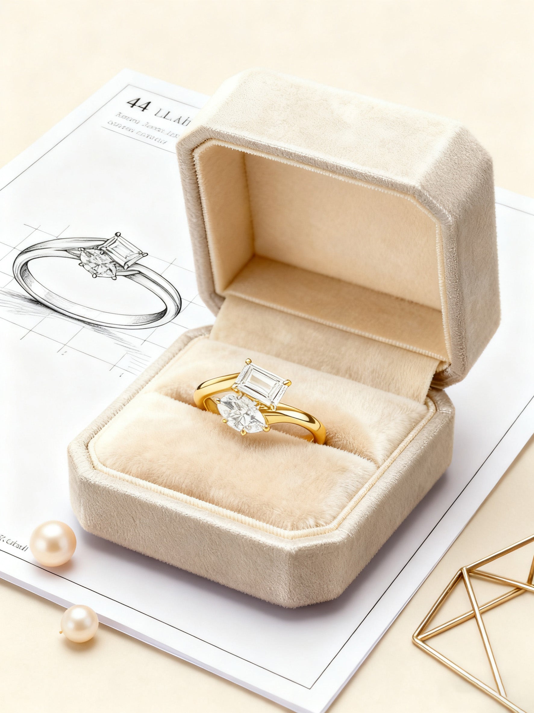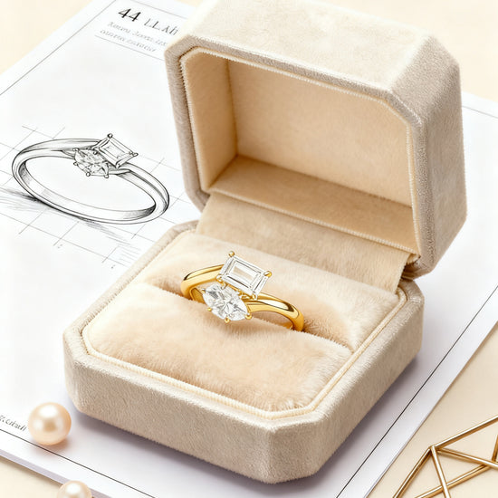 An iconic symbol of two souls intertwined, this Toi et Moi Ring pairs a stunning 1.00 ct Marquise Cut diamond with a bold 2.00 ct Radiant Cut diamond. The contrasting shapes create a modern yet timeless aesthetic — the elongated marquise brings graceful elegance, while the radiant cut adds brilliance and geometry.