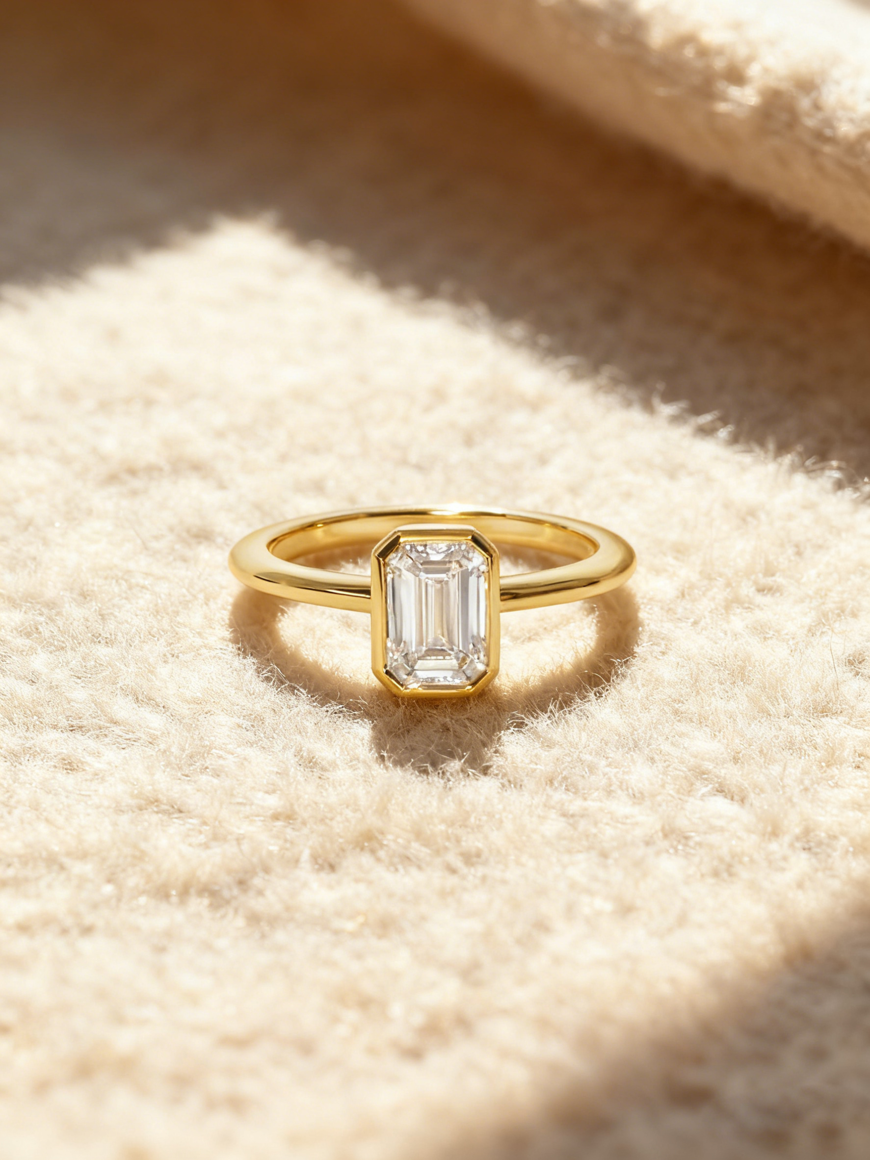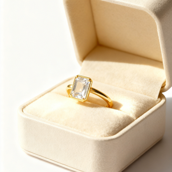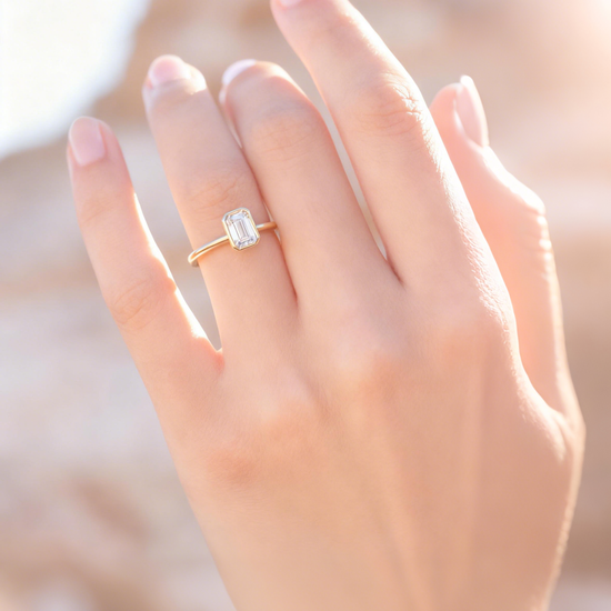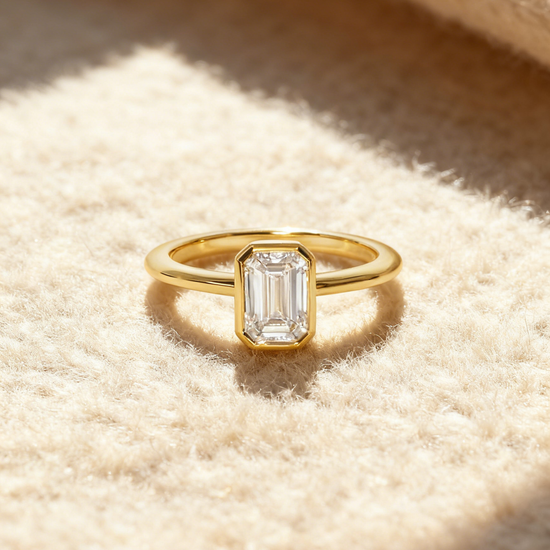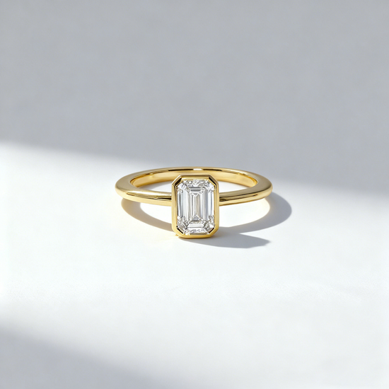 Minimalist, modern, and undeniably refined, Mia Liora’s 1.00ct Emerald Cut Bezel-Set Lab-Grown Diamond Ring is crafted for those who appreciate clean lines and architectural elegance. The emerald cut diamond — admired for its mirror-like clarity and elongated facets — is framed in a smooth full bezel, giving the design a contemporary edge while enhancing security and everyday wearability.