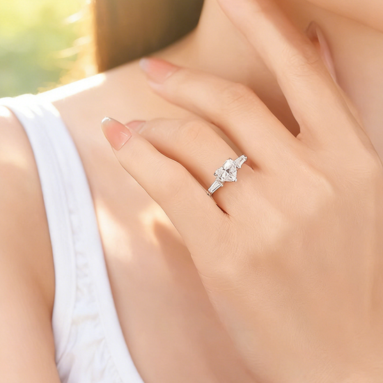 1.50 ct Heart Shape Lab Grown Diamond Three-Stone Ring with Trapezoid Side Stones