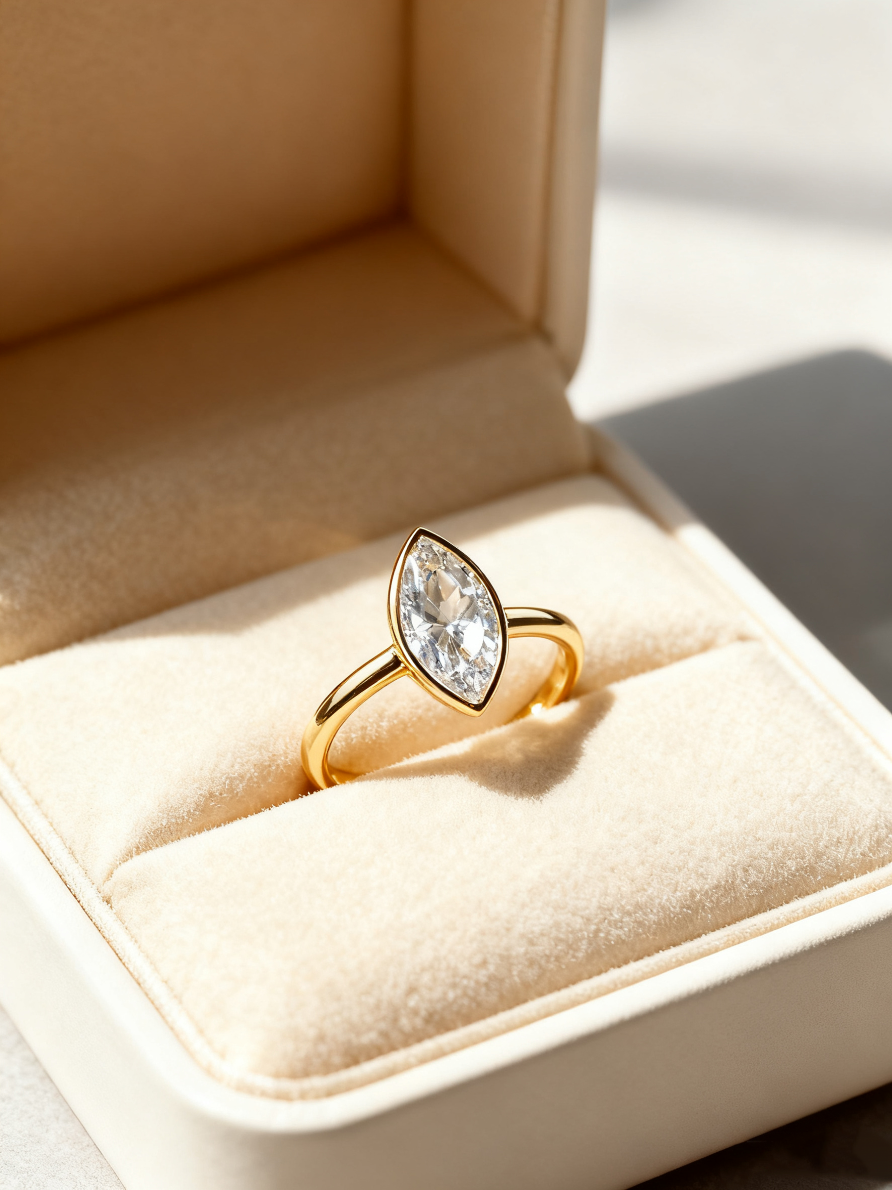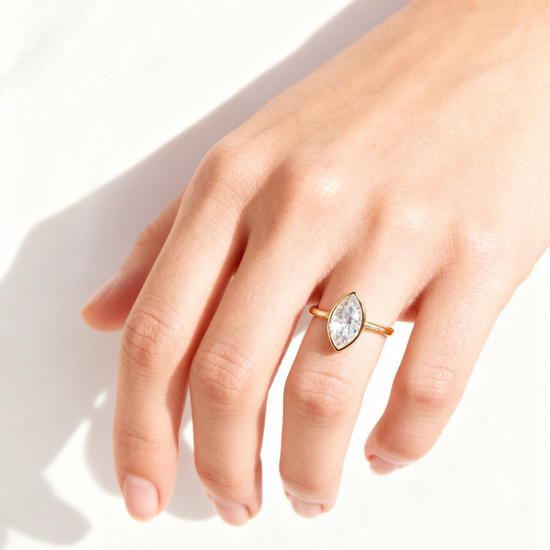 Sleek, modern, and undeniably elegant, Mia Liora’s 2.00 ct Marquise Cut Bezel Set Lab-Grown Diamond Ring is a celebration of sculptural minimalism. The elongated marquise silhouette — IGI-certified and expertly graded D–F color with VVS/VS clarity — creates an instant lengthening effect on the hand, offering both brilliance and contemporary sophistication.