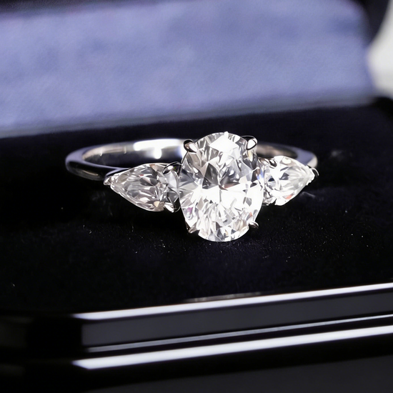 2.50 ct Oval Lab Grown Diamond Three-Stone Ring with Pear Side Stones