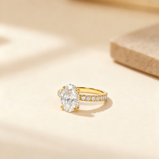 3.00 Oval Cut Diamond Solitaire Ring with Pave Band