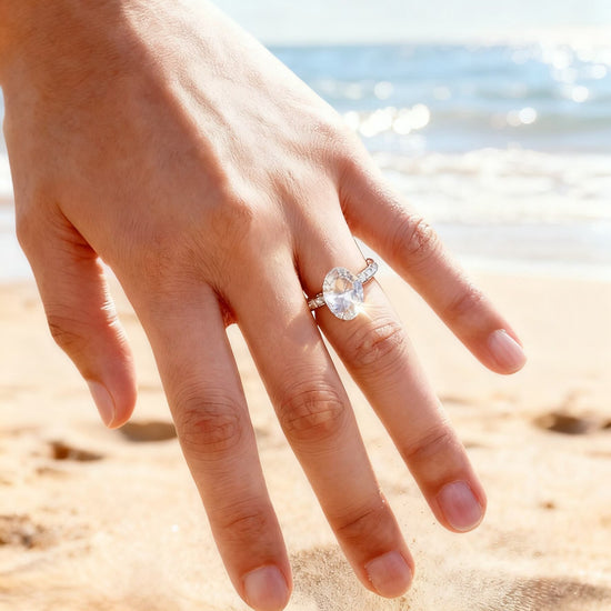 Elevated, timeless, and radiating pure brilliance, Mia Liora’s 3.00ct Oval Solitaire Diamond Ring is crafted for those who desire refined luxury with modern sophistication. The elongated oval centre stone captures exceptional fire and scintillation, standing proudly in an elegant 4 prong setting that enhances its natural light performance.