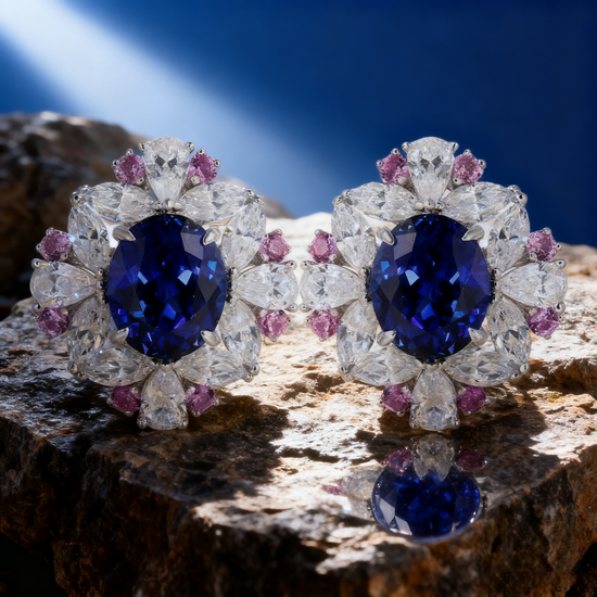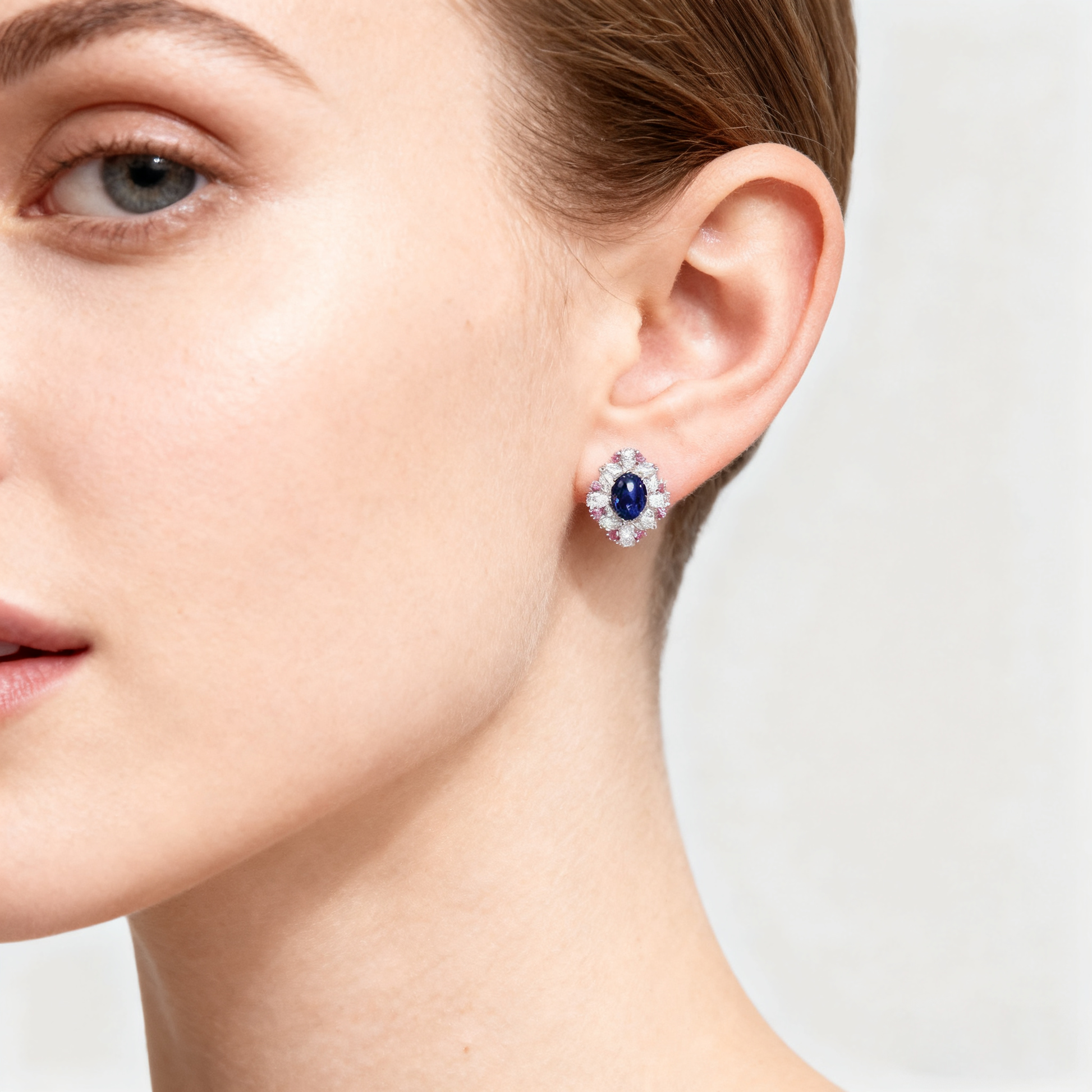 Vivid and enchanting, Mia Liora’s 3.00ct Royal Blue Sapphire & Pink Azure Luminance Lab-Grown Diamond Halo Earrings redefine elegance with a captivating play of color and light. Each earring features a deep royal-blue sapphire at its center, surrounded by an exquisite halo of alternating lab-grown white and pink diamonds, forming a floral-inspired brilliance. The combination of pear and round cuts creates mesmerizing dimension, while every diamond, graded D–F color and VVS/VS clarity, radiates exceptional sparkle. Crafted in PT950 Platinum or 18K Gold, these earrings offer both sophistication and a touch of modern romance.