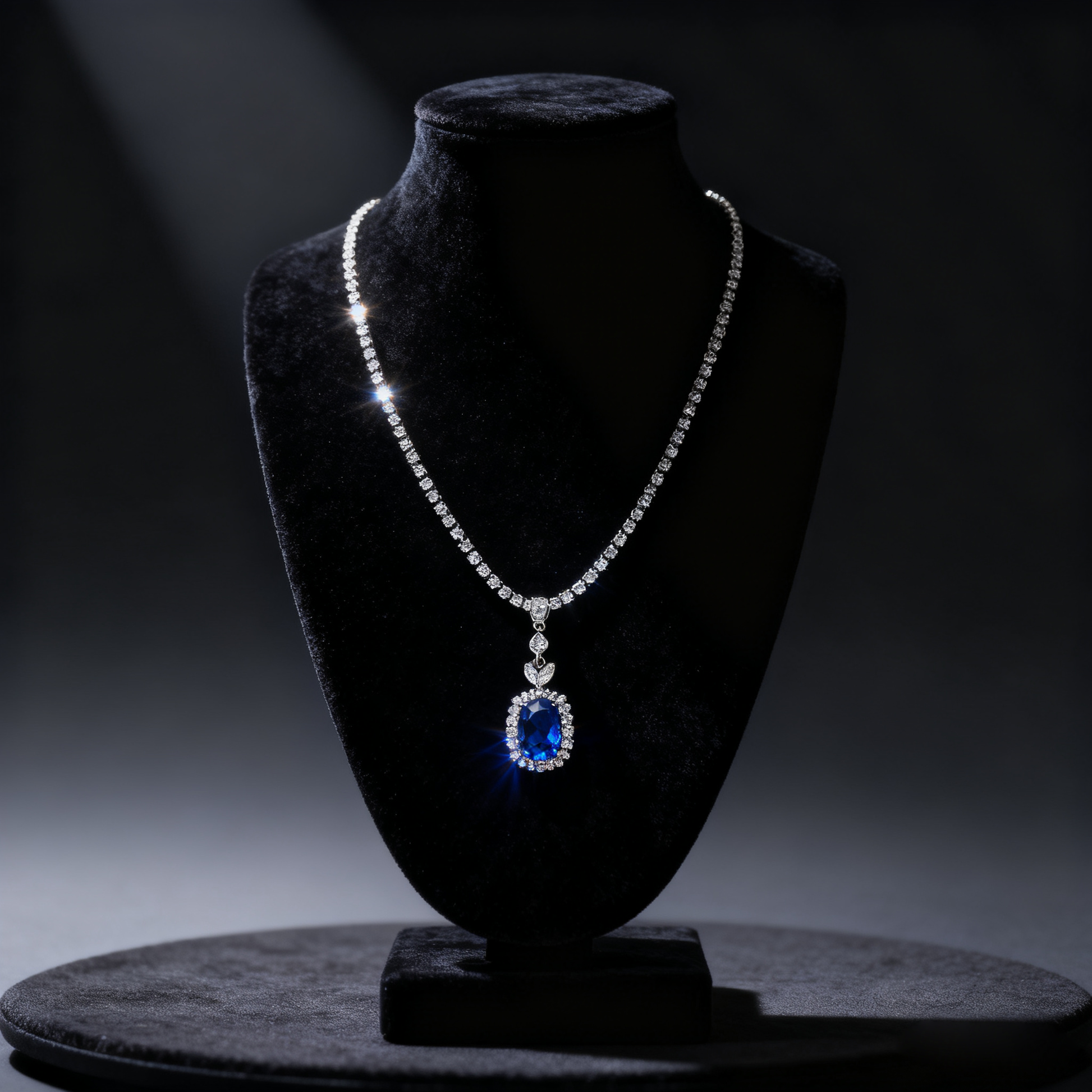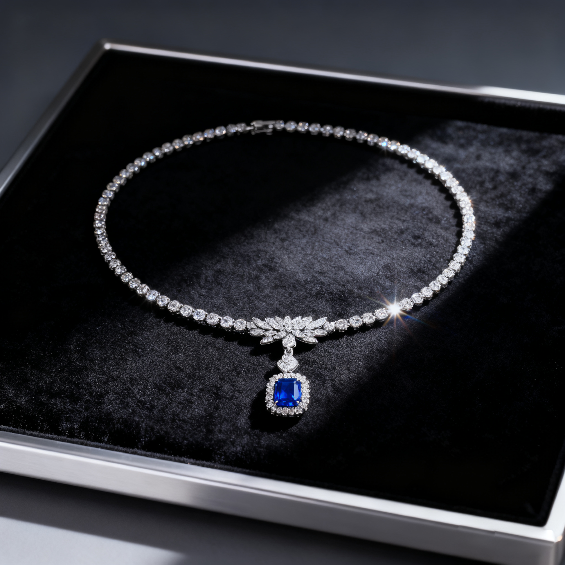 Majestic and timeless, Mia Liora’s 5.00ct Royal Blue Sapphire & Lab-Grown Diamond Azure Luminance Drop Necklace captures regal elegance through exquisite craftsmanship. The deep royal-blue sapphire, cut in a striking emerald shape, is framed by a halo of brilliant lab-grown diamonds, gracefully suspended from a marquise diamond cluster that evokes delicate wings of light. The necklace itself, adorned with a continuous line of round lab-grown diamonds, radiates brilliance from every angle. Handcrafted in PT950 Platinum or 18K Gold, this piece is designed for the woman who commands attention with sophistication and poise.