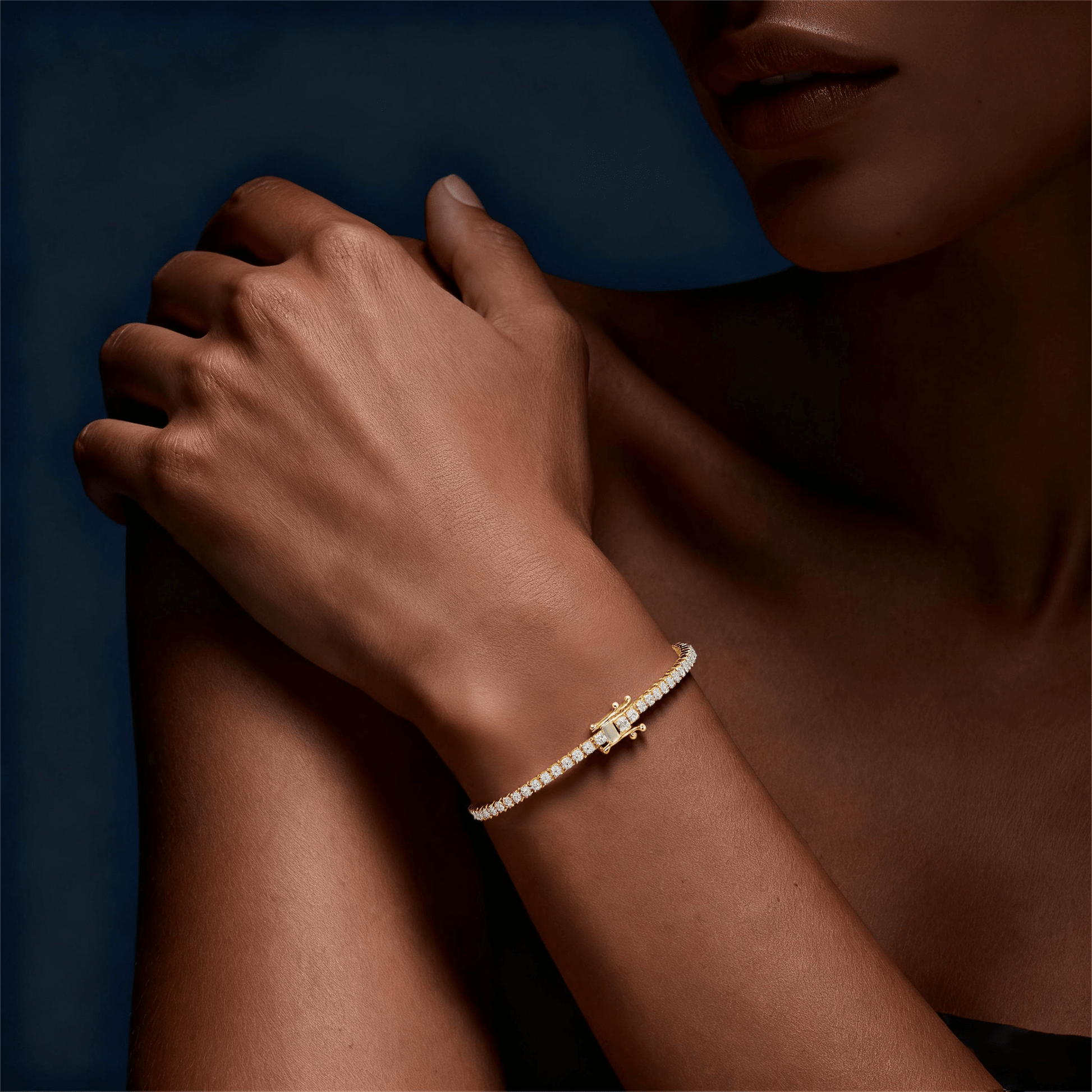 Timeless and refined, Mia Liora’s 5 ct Lab Grown Diamond Tennis Bracelet Round Cut (9 points each) embodies graceful luxury and enduring brilliance. Each IGI-certified lab-grown diamond, graded D–F color and VVS/VS clarity, is meticulously hand-cut to achieve perfect symmetry and fire. Expertly set in a continuous line, the diamonds create a seamless flow of light and movement around the wrist. Crafted in PT950 Platinum or 18K Gold, this nickel-free, hypoallergenic bracelet reflects Mia Liora’s commitment to exceptional craftsmanship and sustainable luxury — a modern classic designed to shine effortlessly through every occasion.