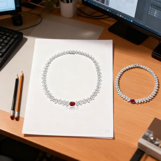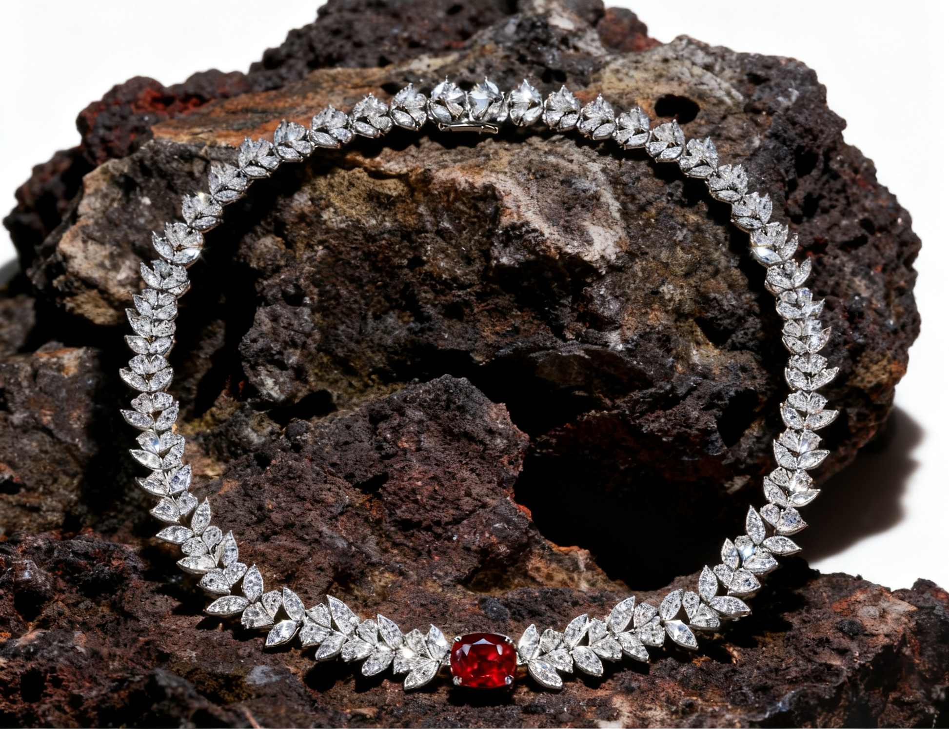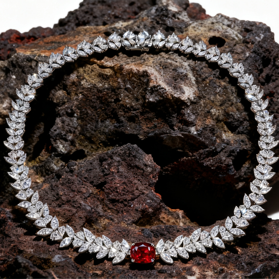 Radiant and regal, Mia Liora’s 7.00ct Cushion-Cut Ruby & Lab-Grown Diamond Leaf Necklace captures the essence of timeless sophistication. At its heart lies a vivid, cushion-cut ruby, a symbol of passion and strength, embraced by a cascade of marquise-cut lab-grown diamonds arranged in a graceful leaf motif. Each diamond, graded D–F color and VVS/VS clarity, is meticulously hand-set to create a fluid silhouette of brilliance and movement. Crafted in PT950 Platinum or 18K Gold, this masterpiece embodies refined craftsmanship, ethical luxury, and enduring allure, perfect for gala evenings or once-in-a-lifetime moments.
