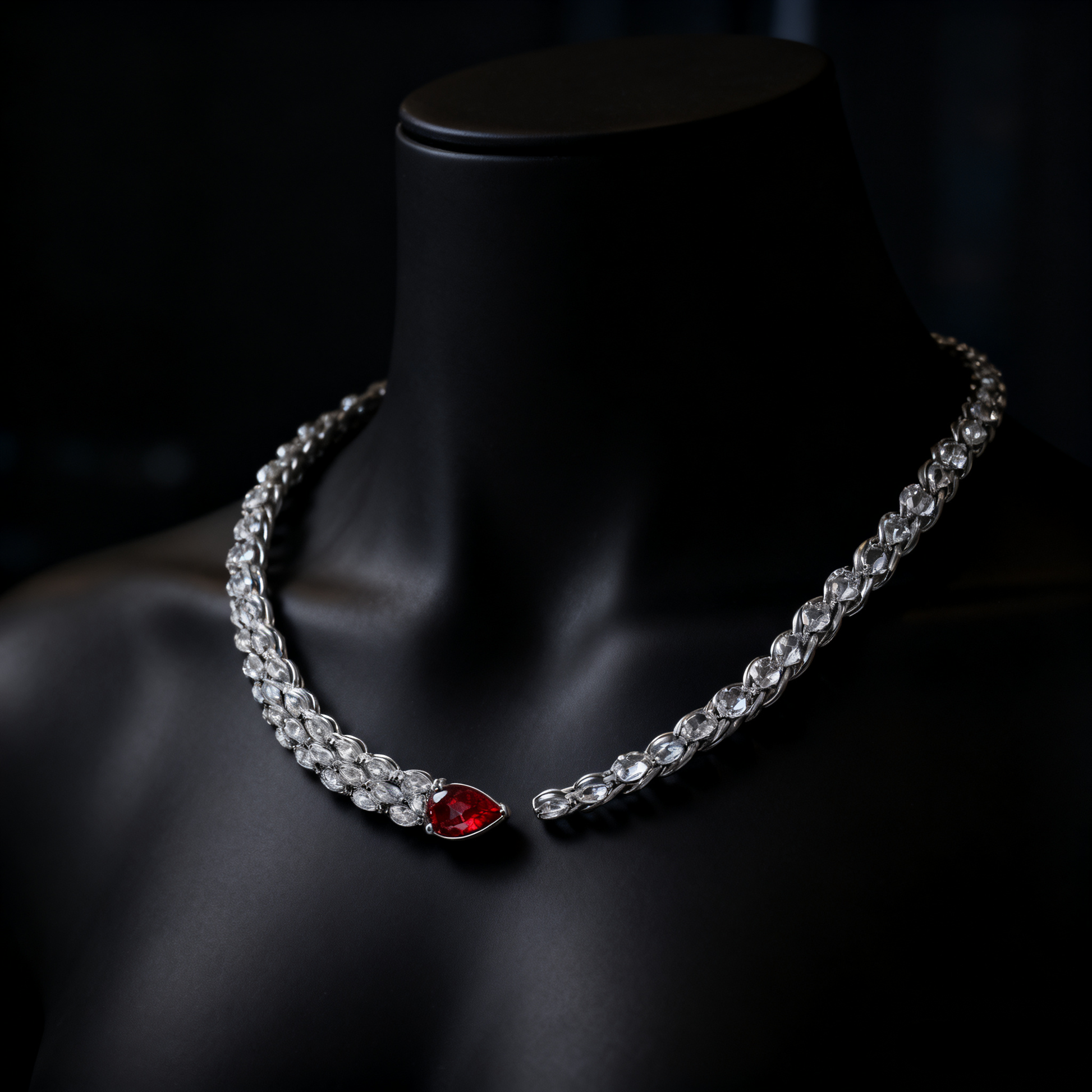 2.00ct Modern Ruby Drop & Lab-Grown Diamond Choker Necklace