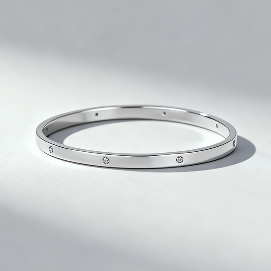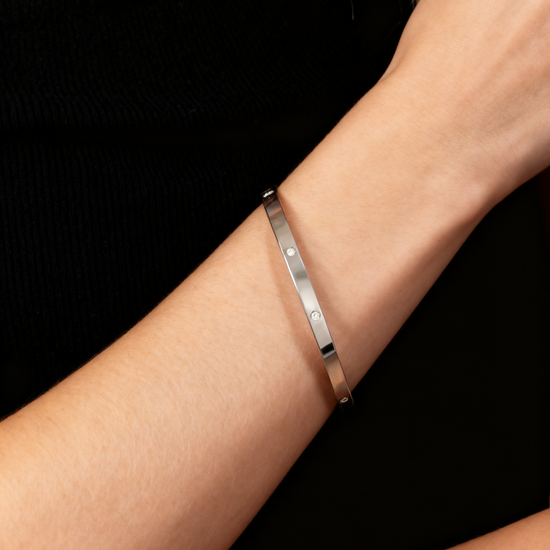Crafted in PT950 platinium, this hypoallergenic and nickel free bangle reflects Mia Liora’s commitment to clean lines, exceptional craftsmanship, and timeless versatility. Elegant worn alone and stunning when stacked, the Amira Bangle is a contemporary classic made to shine with effortless sophistication.