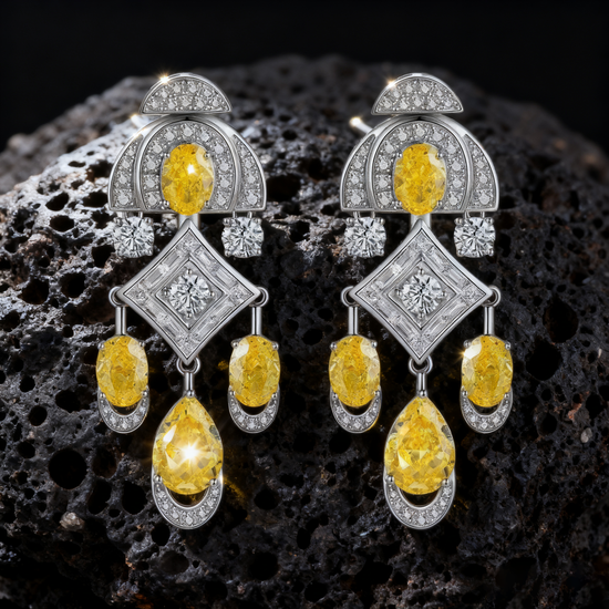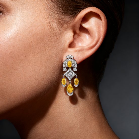 Elegant and architectural, Mia Liora’s Art Deco-Inspired Yellow & White Lab-Grown Diamond Drop Earrings blend geometric precision with timeless glamour. This exquisite design features a striking composition of vivid yellow and pure white lab-grown diamonds arranged in tiered Art Deco symmetry. Each stone is meticulously hand-set, showcasing the interplay of color, brilliance, and structure. Crafted in PT950 Platinum or 18K Gold, these earrings capture the sophistication of vintage luxury with a modern, sustainable touch, perfect for evening occasions or refined statement wear.