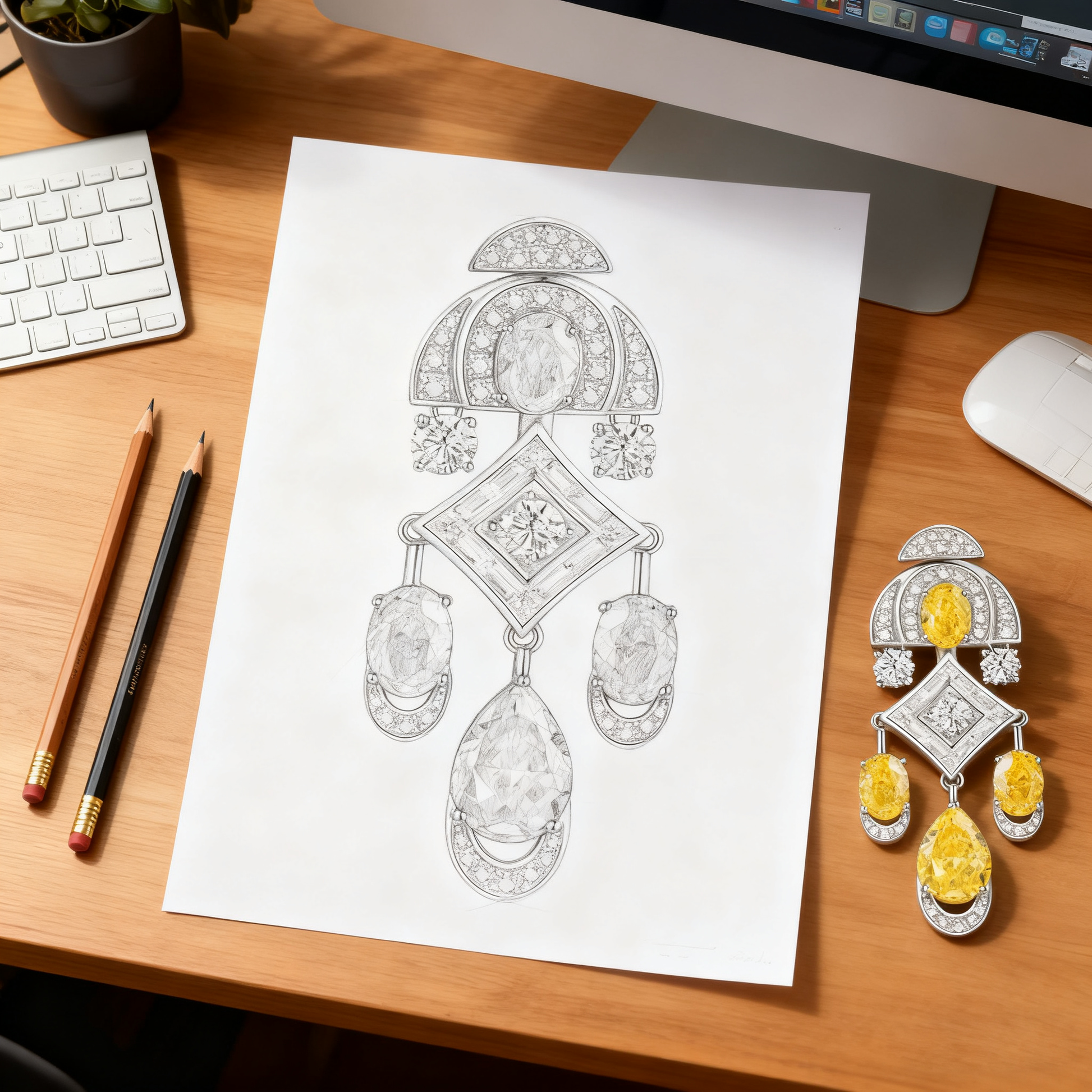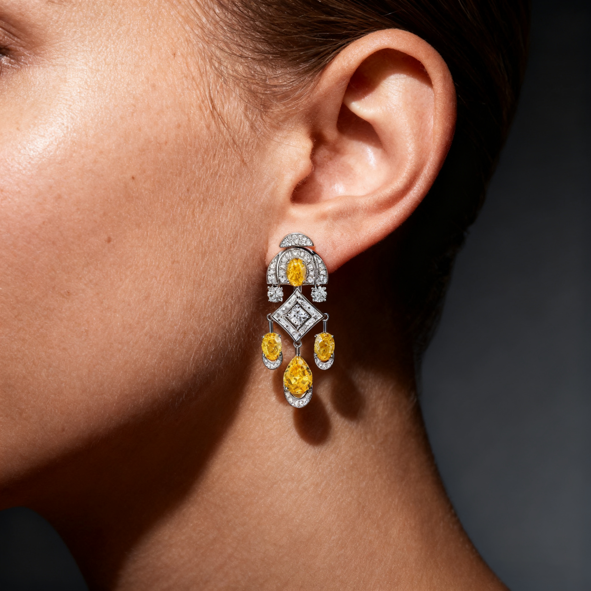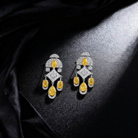 Art Deco-Inspired Yellow & White Lab-Grown Diamond Drop Earrings