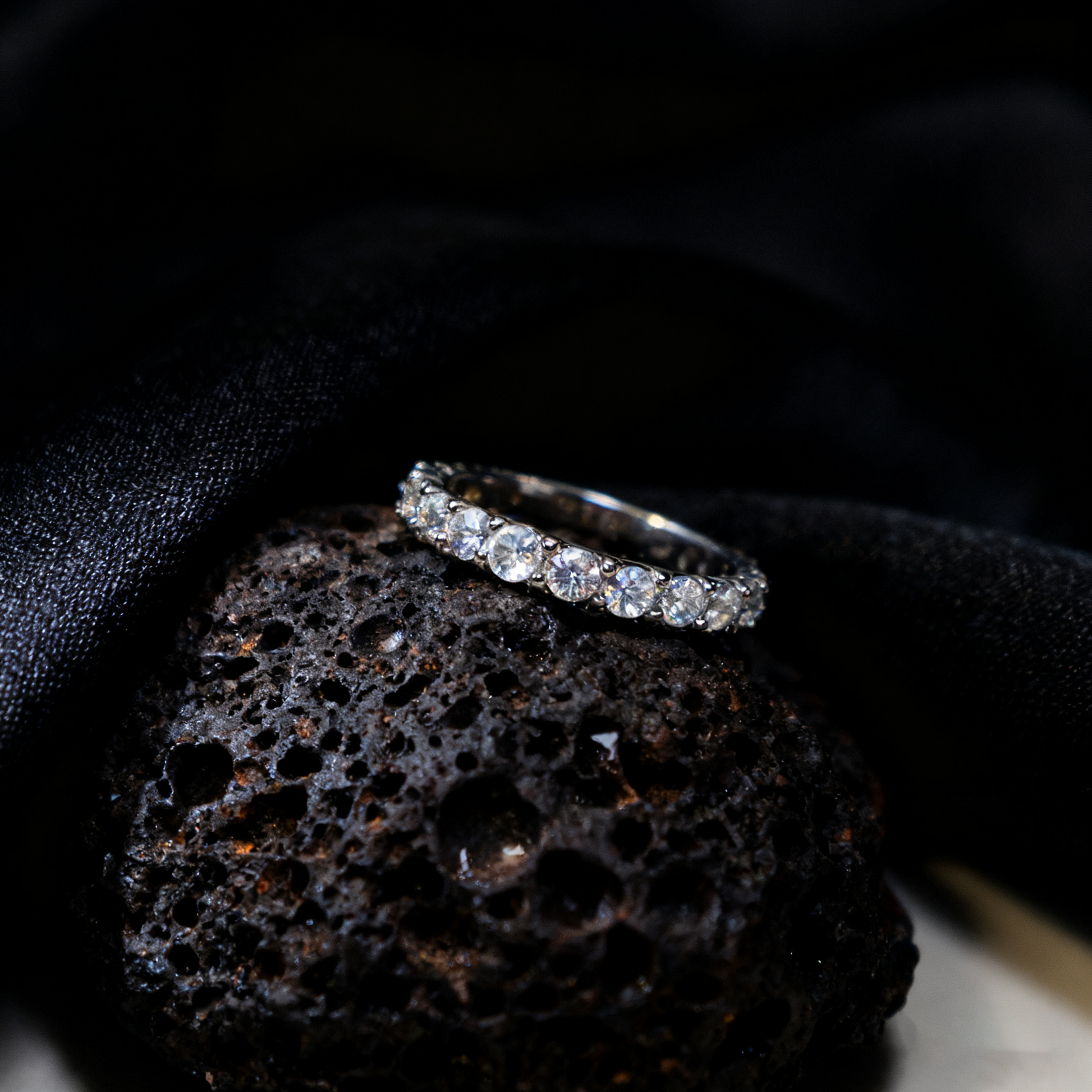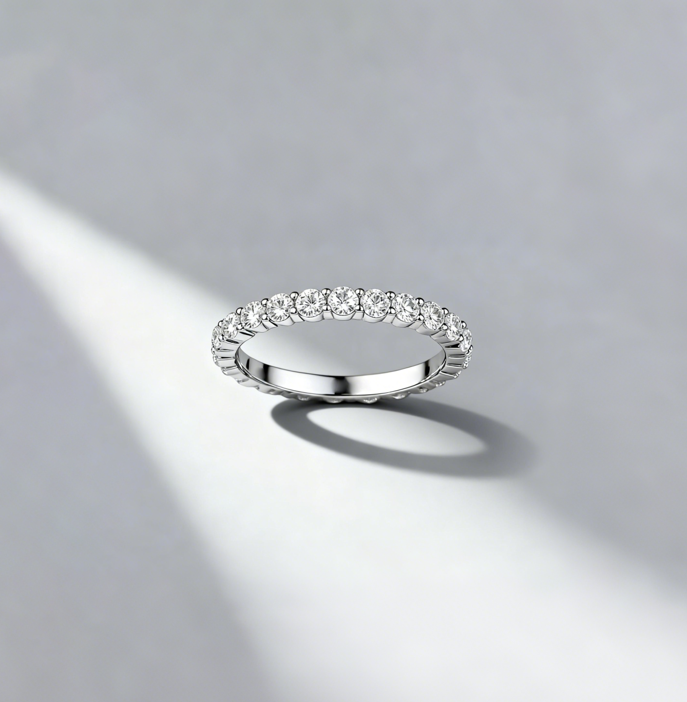 The Venlis.V 0.10 ct Round Cut Full Eternity Diamond Simulant Ring is a timeless symbol of continuous brilliance. Featuring round cut diamond simulants of approximately 10 points each, the stones encircle the entire band to create uninterrupted sparkle from every angle. Elegant, versatile, and luxurious, this full eternity ring is perfect as a wedding band, anniversary ring, stacking piece, or a refined standalone statement.