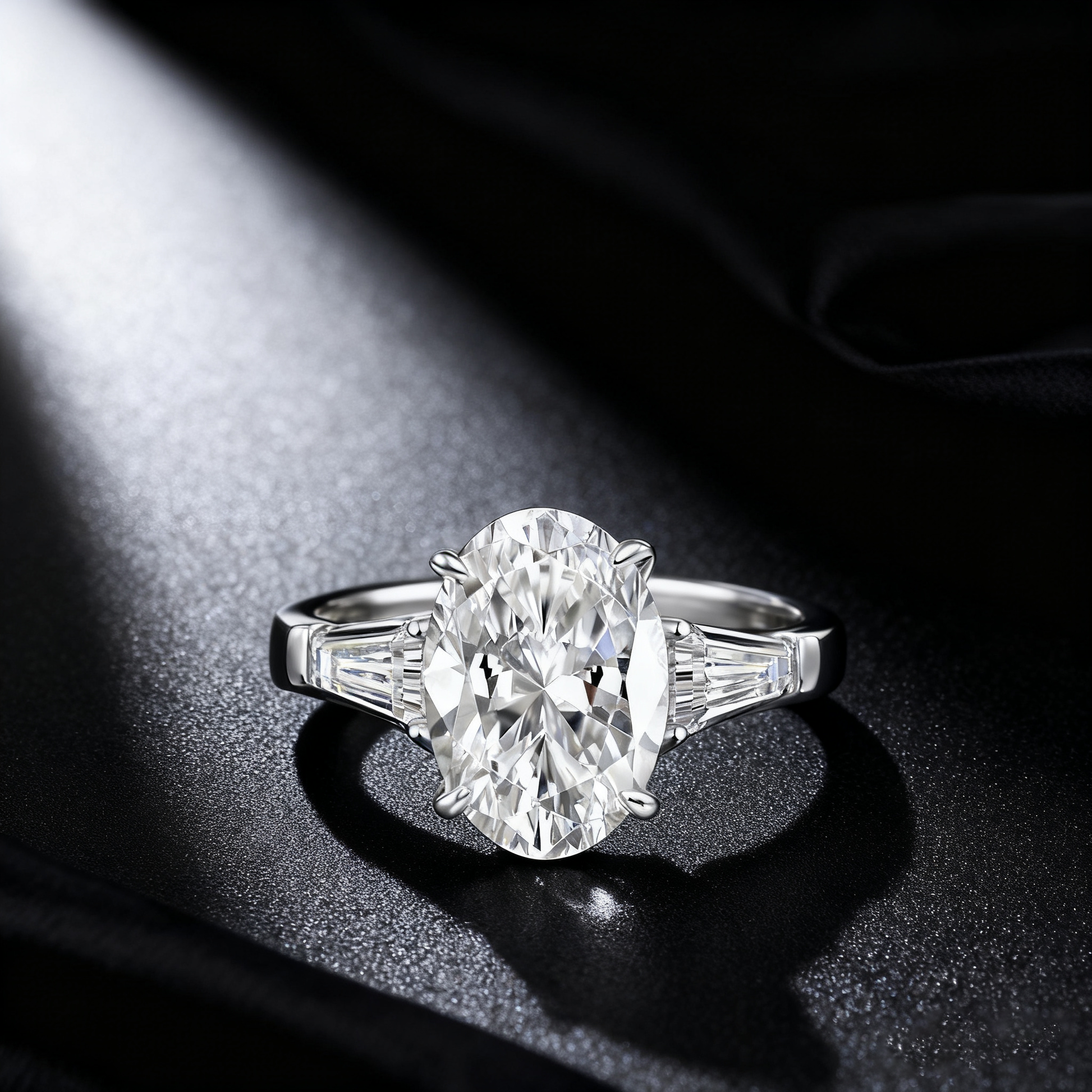 Venlis.V 3.50ct Oval Cut with 0.70 ct Trapezoid Cut each Wing Diamond Three Stone Ring