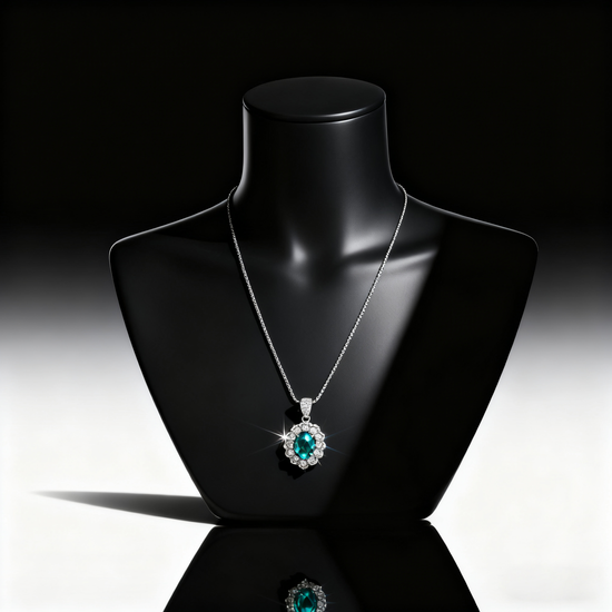The Verdant Grace Emerald and Lab Grown Diamond Drop Necklace embodies timeless majesty and refined craftsmanship. Each vivid green emerald cascades gracefully in teardrop brilliance, accentuated by an array of hand set lab grown diamonds that shimmer with captivating light. This masterpiece celebrates the allure of natural elegance and the artistry of fine jewelry, offering an enchanting balance between classic grandeur and modern sophistication. Perfect for gala evenings or statement occasions, this necklace transforms every appearance into a moment of radiance.